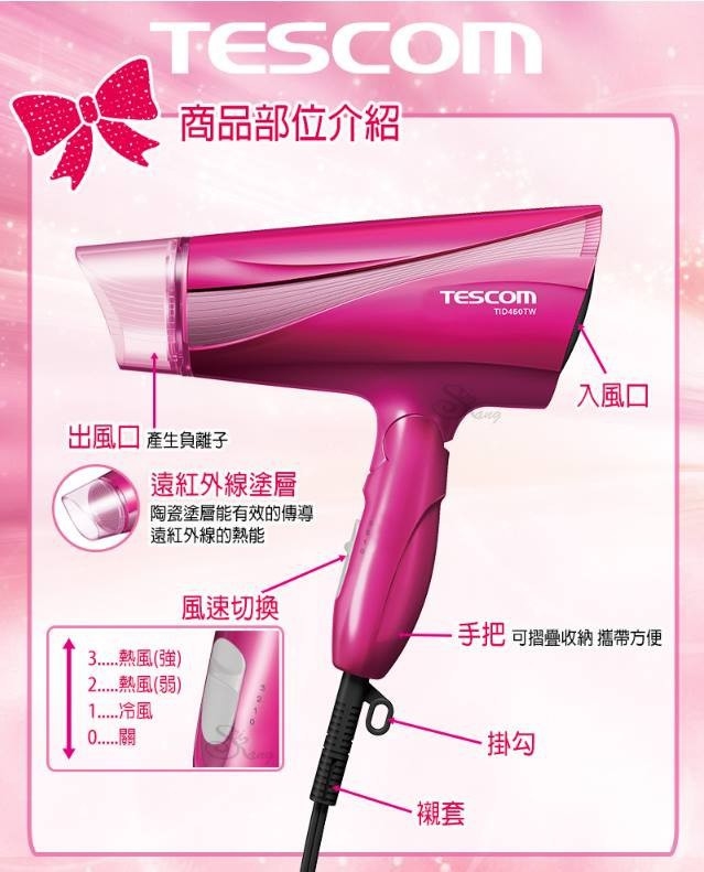 Turbo大風量,吹乾速度提高30%,可迅速吹乾頭髮