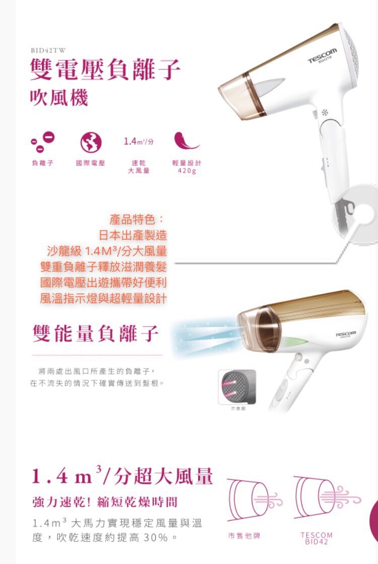 TESCOM BID42 獨家優惠來囉 白色包裝很可以~
